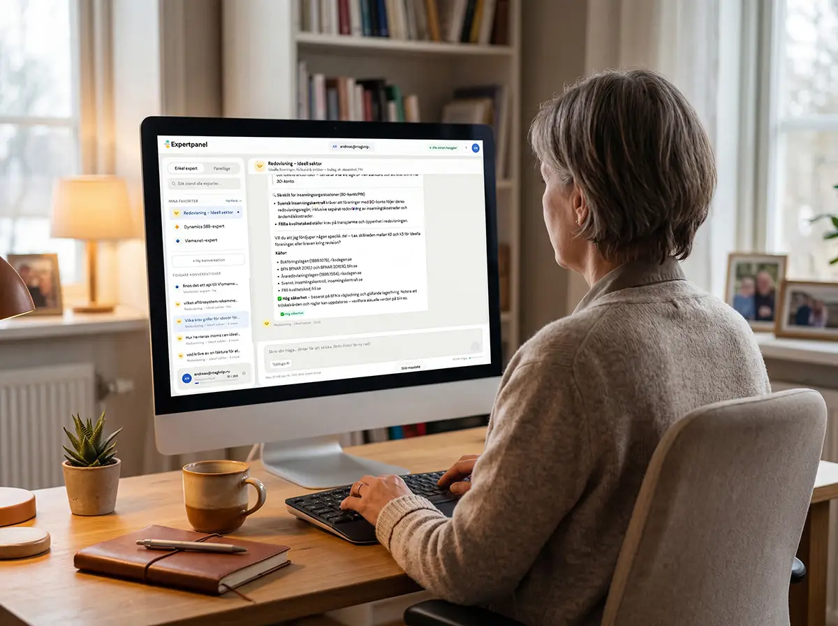 Expertpanel.se är en AI-driven support/rådgivningstjänst byggd för alla inom organisationen som i sitt jobb stöter på frågor inom ekonomi, juridik, HR och administration som kräver ett snabbt, pålitligt svar. Användare kan även skapa egna Experter (AI-agenter) och ladda upp egna interna dokument som t ex policys, manualer, avtal och få snabba svar exakt utifrån företagets eget material.
